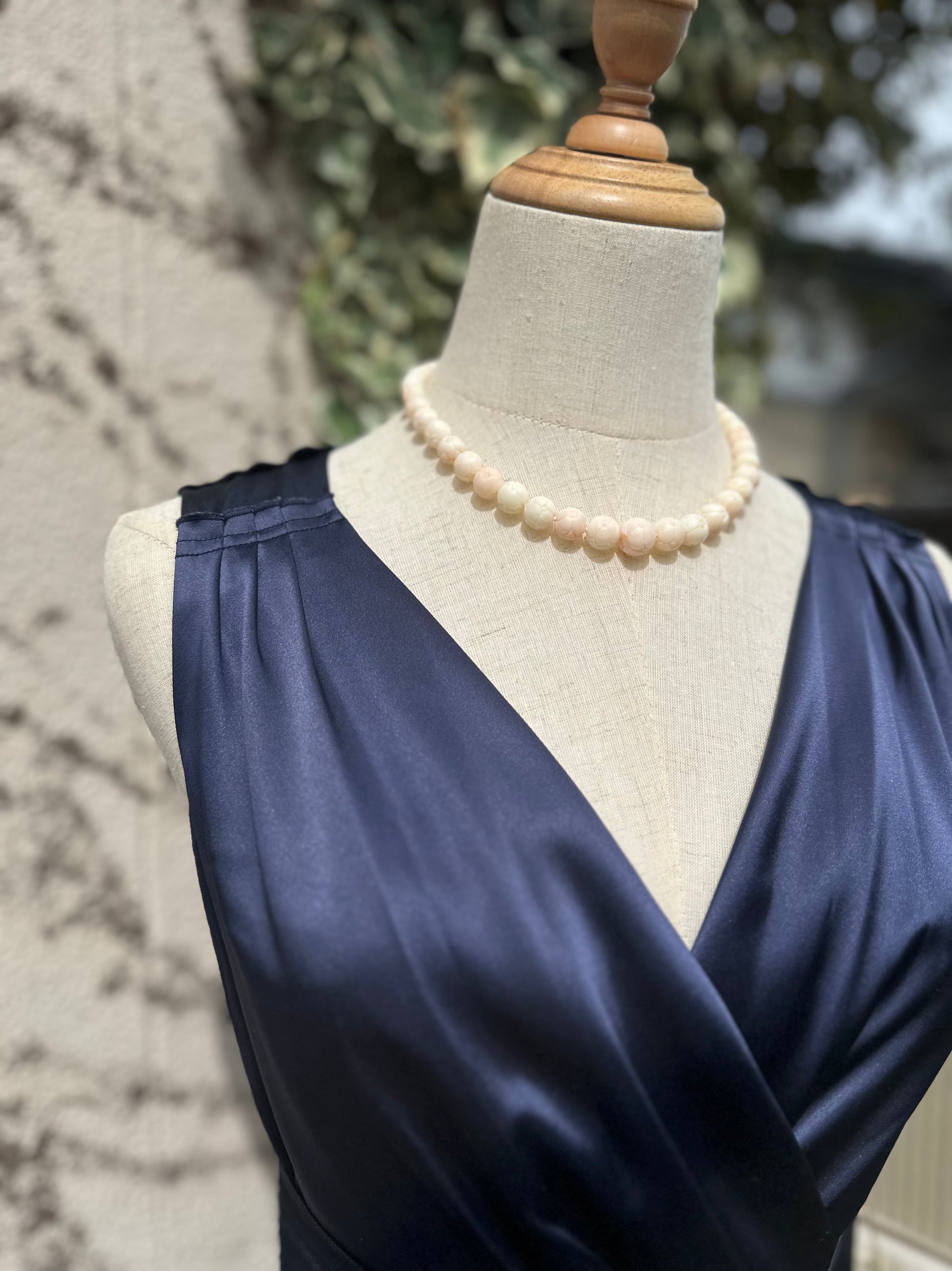 This necklace has been re-polished and re-threaded to all-knotted, so the thread is nice and tight.