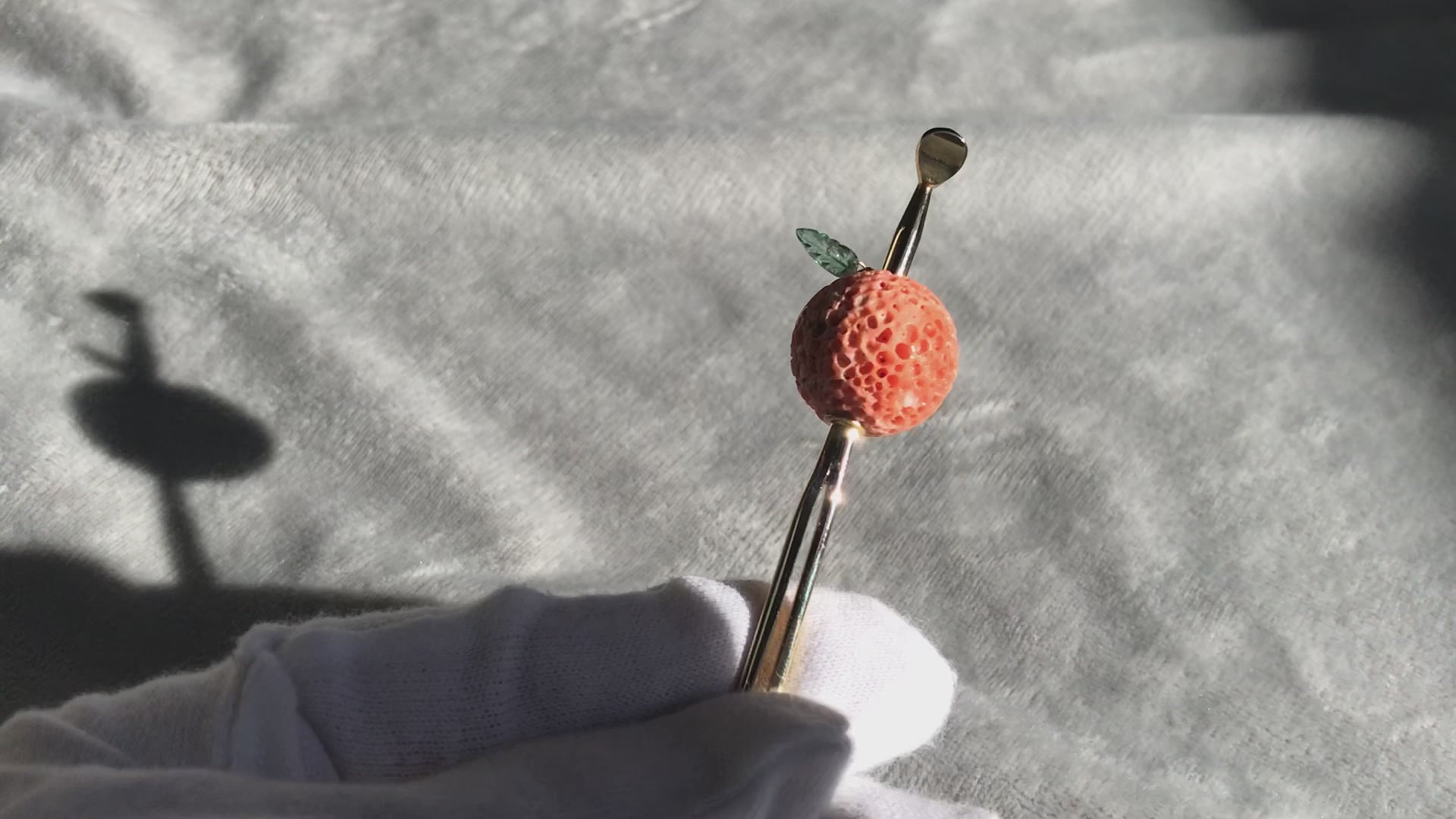 The coral bead on this Kanzashi has a lot of small holes (“su” 鬆 in Japanese).