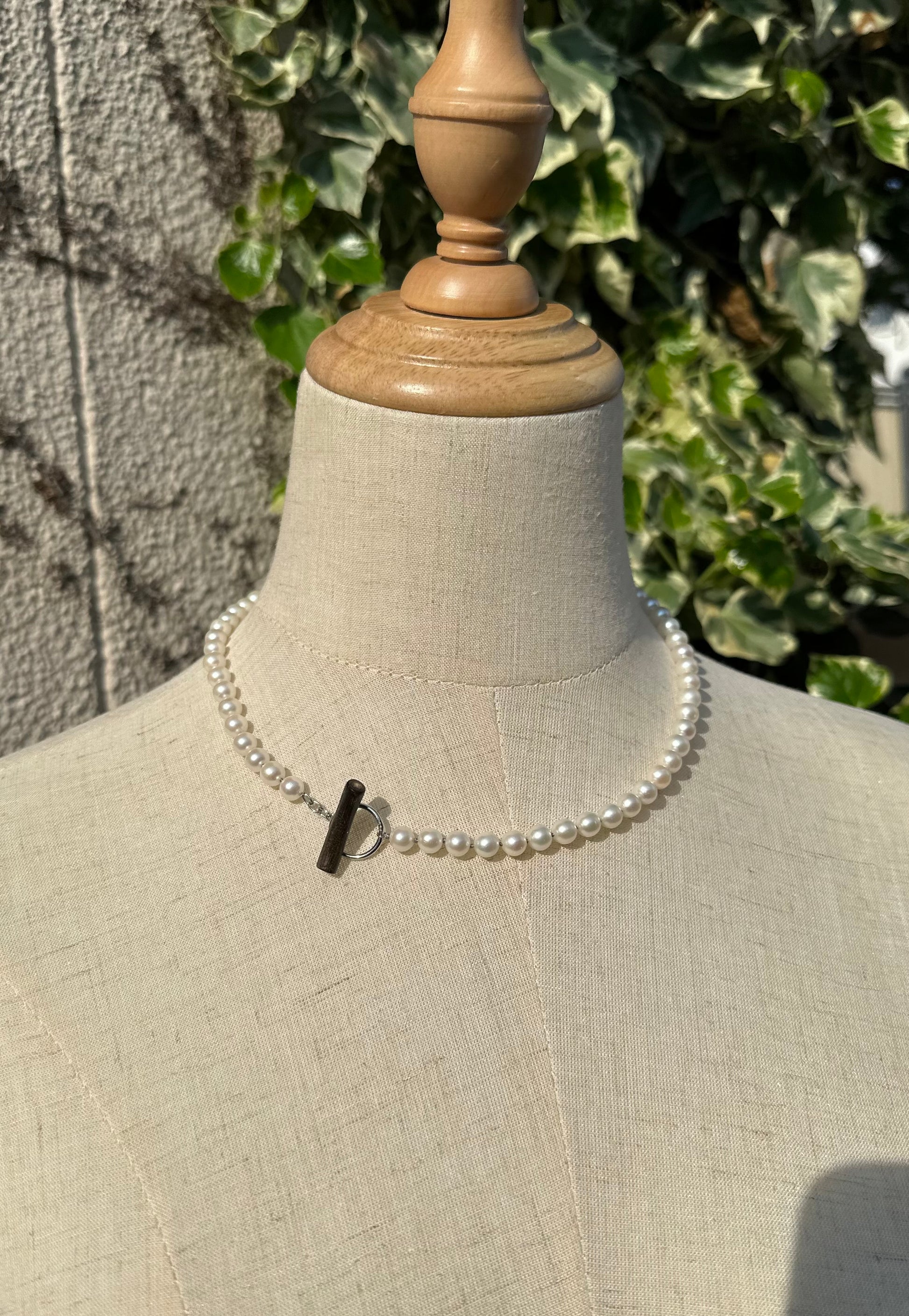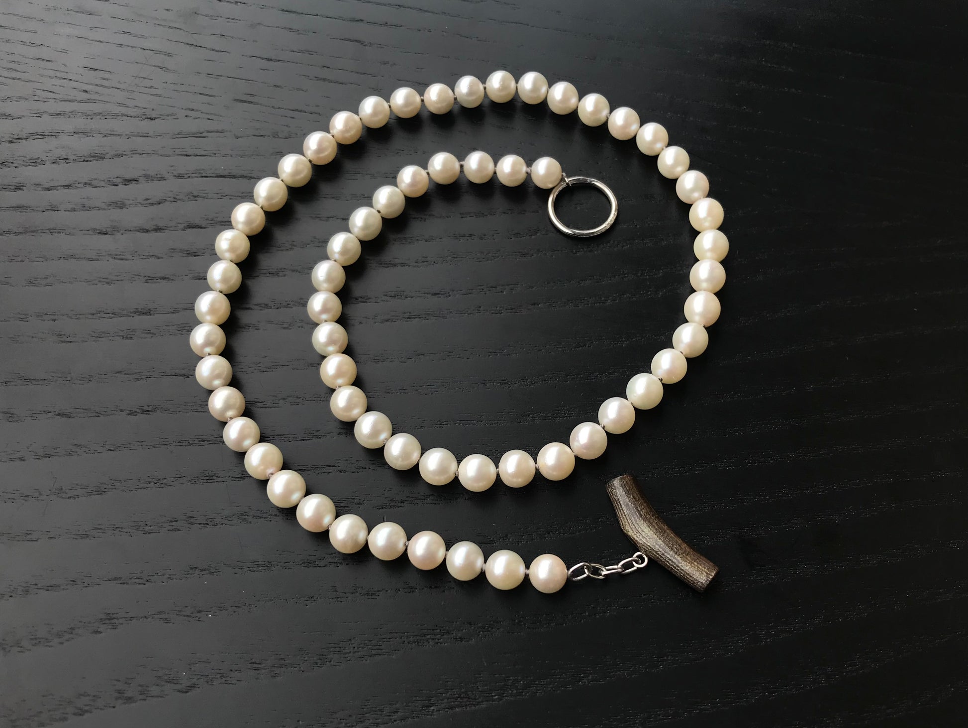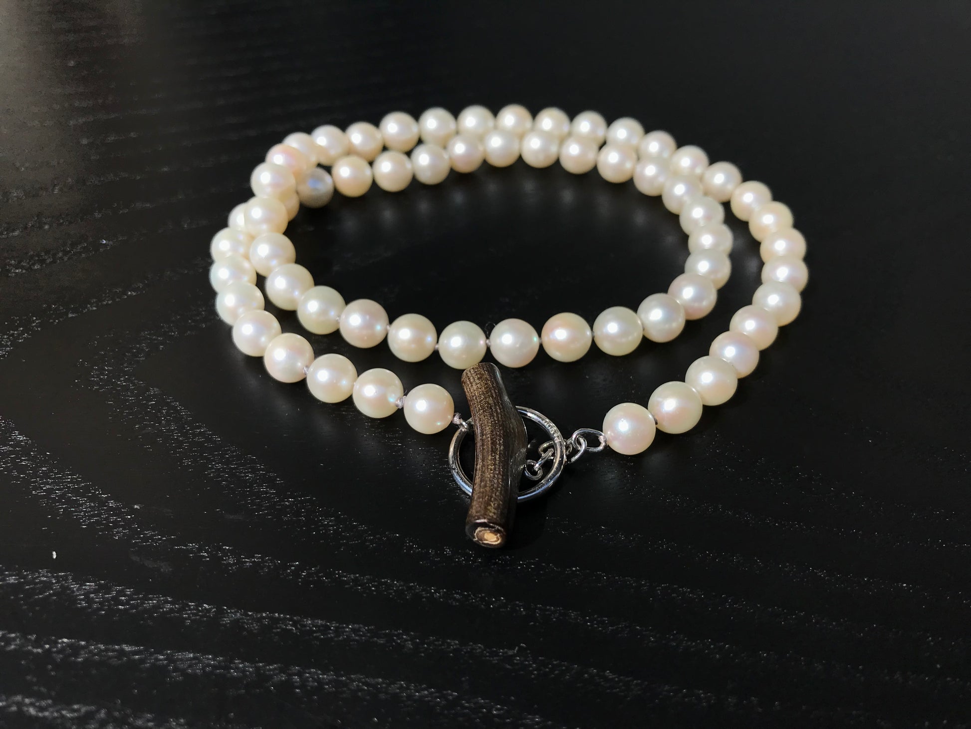 Japanese Akoya salt-water pearl necklace with raimbow coral branch.