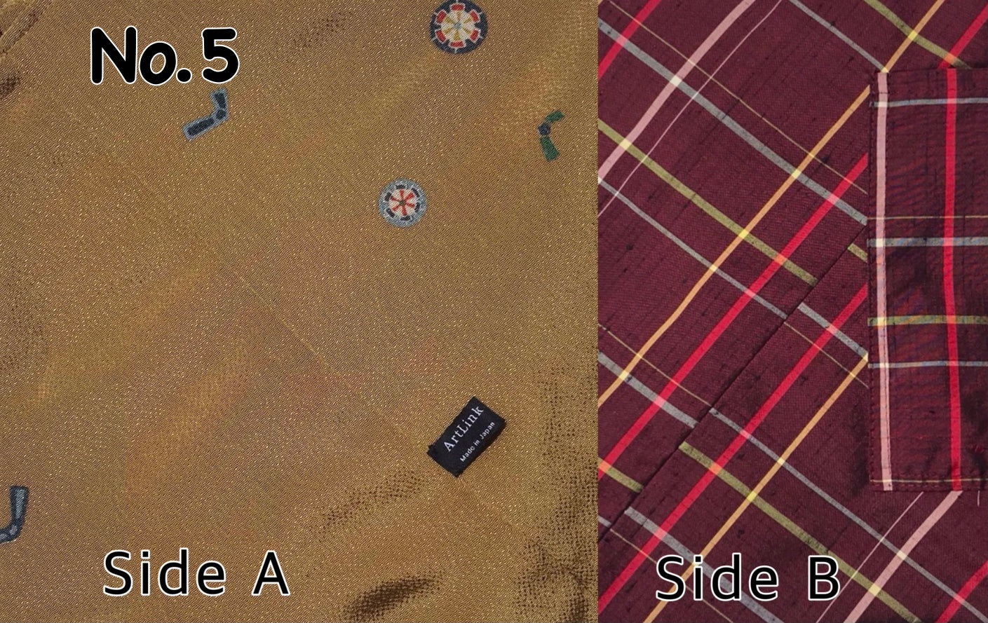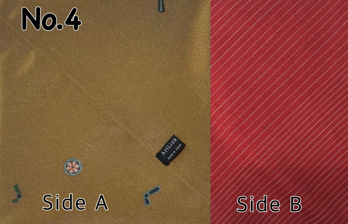 These bags are made from rolls of richly patterned silk kimono material that have been in the inventory of kimono shops. Since the demand for kimono has decreased, many silk rolls that have never been used are left over in kimono shop inventories. They are old, but new.