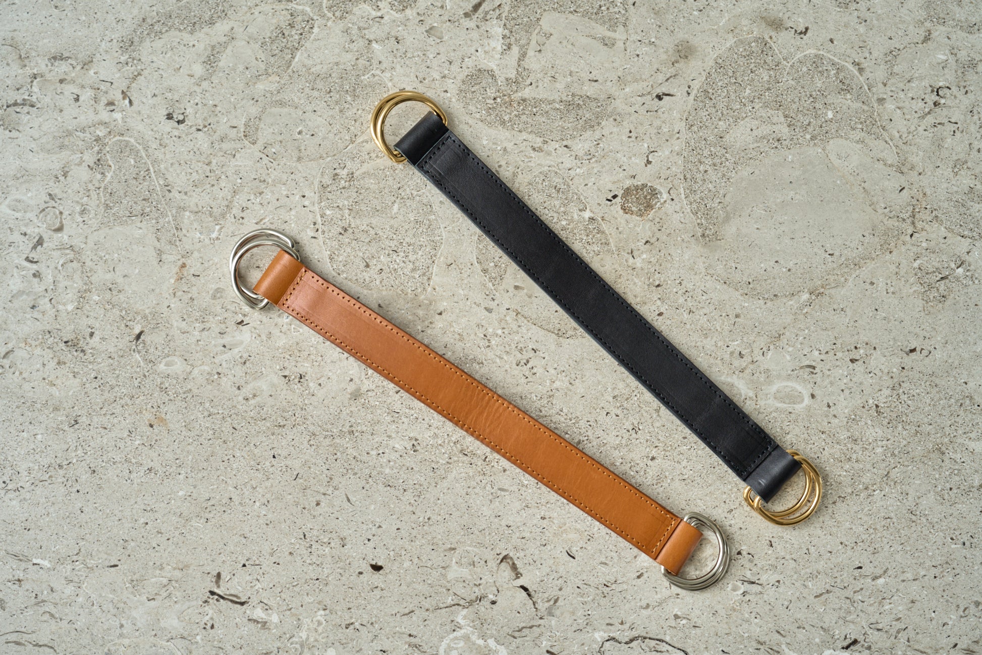 To use it as a shoulder bag, connect the ends of the bag to the two rings of a leather handle.
