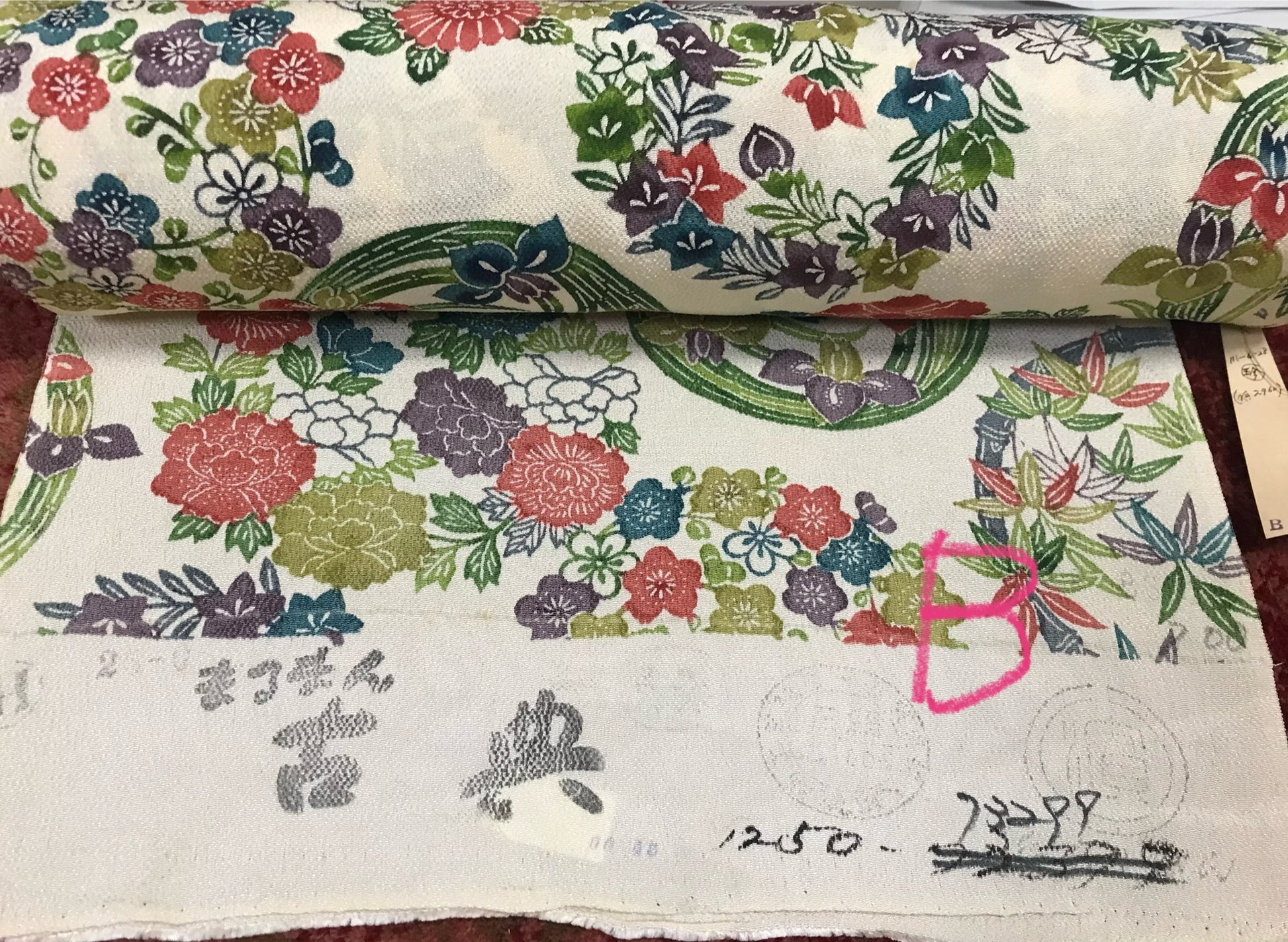 (Chirimen: in the process of weaving, the horizontal threads are twisted in alternating clockwise and counterclockwise directions. This creates a texture of very fine undulations on the surface of the silk cloth.)