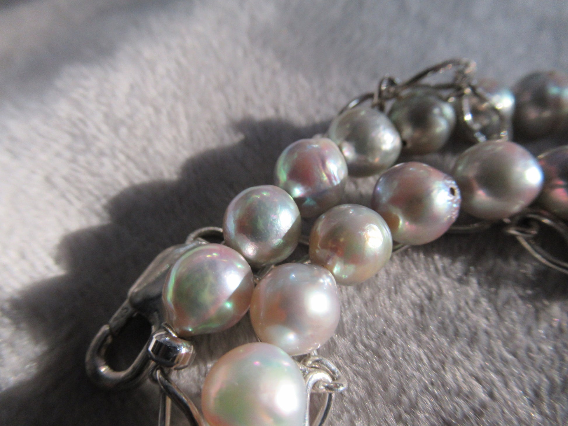 The surface quality is not excellent: there are dimples, small holes and other natural imperfections. But the pearls have excellent luster and an orient of iridescent rainbow colors.