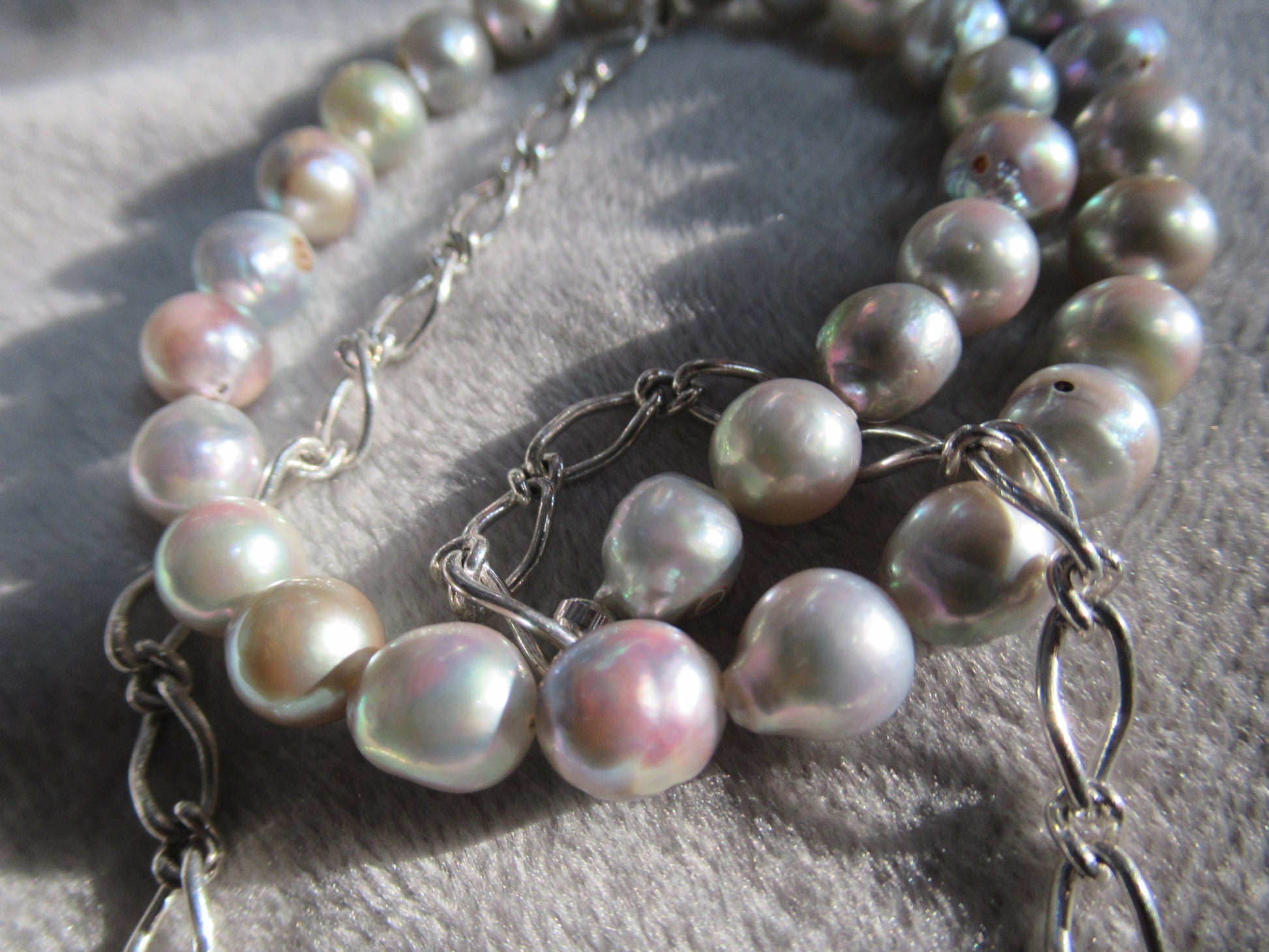 I combined pearls and silver, so you can wear it with various styles of clothing.